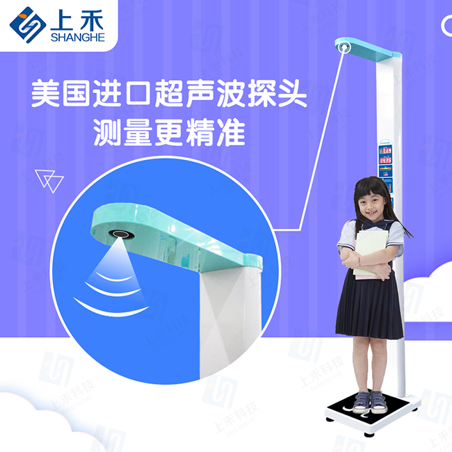 上禾SH-700兒童全自動超聲波身高體重坐高秤測高范圍可自由選擇20-160cm、20-180cm,適應性設計保證更高的測量精度。
