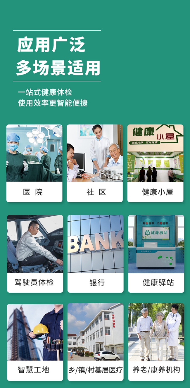 SH-N15 智能健康體檢一體機,測量功能多樣,智能轉場便捷,廣泛適用于健康小屋、醫院、社區、養老機構、企/事業單位、金融保險、駕駛員崗前體檢等領域。